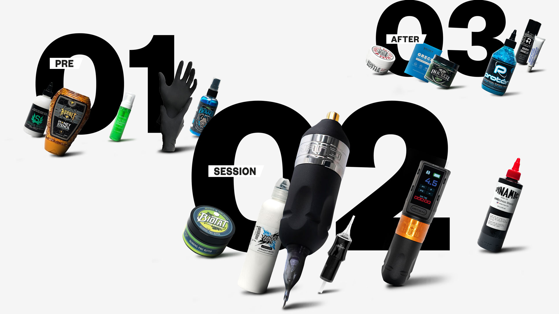 What you need for your artwork simply has to work - reliably, cleanly, and to a high standard. At vyve, you'll find everything you need in one place: the right products for before, during, and after. So you can concentrate fully on your art - without stress, without compromise. Whether disposable items, care products, or tattoo equipment: quality always comes first. In the end, what counts is that the tattoo looks good and lasts. And that everyone feels good about it - you and your customers. Check out our pro recommendations for all steps of your workflow below: